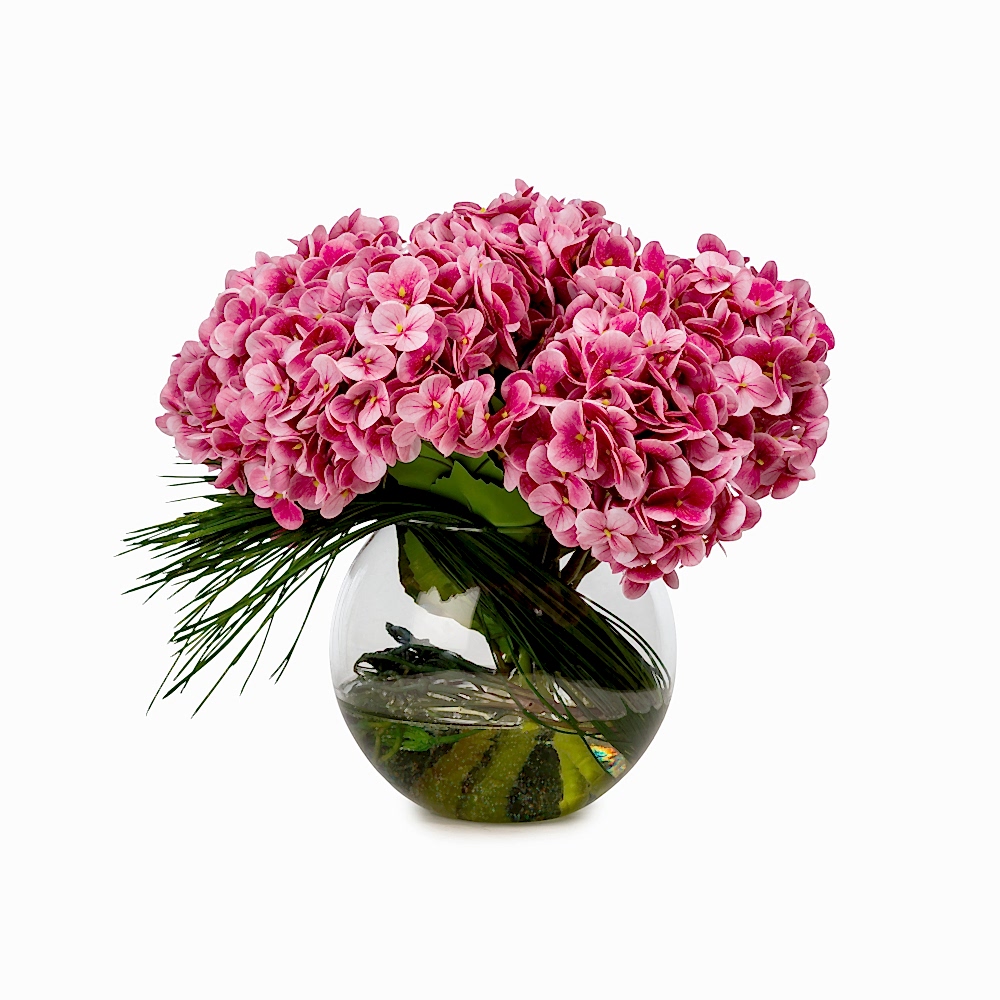 Akvaryum Camda Jelli Islak Dokulu Tozlu Pembe Ortanca Aranjman (30 CM)