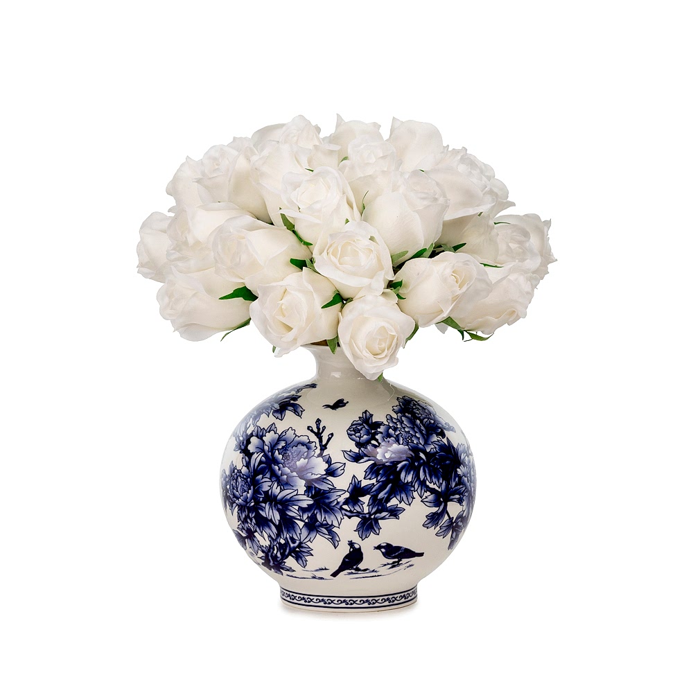 Bleu Blanc Vazo Islak Dokulu Gül Aranjman (27 CM)