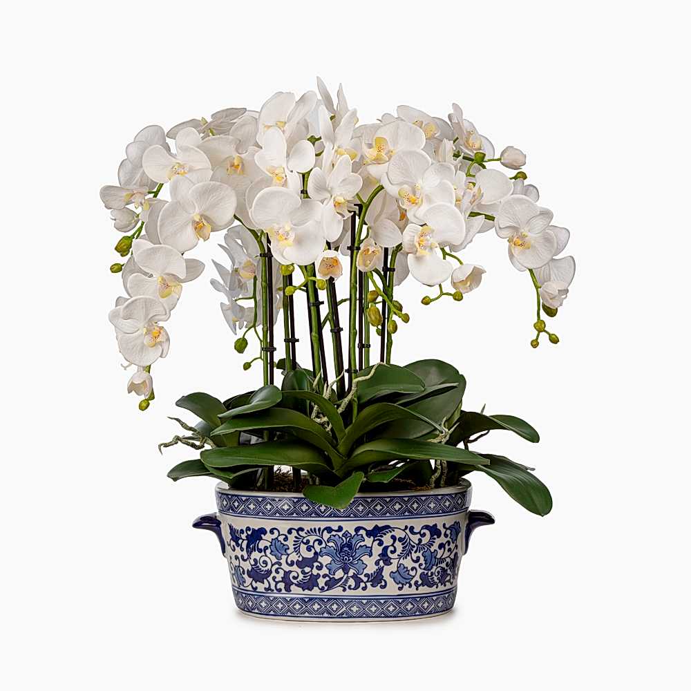 Bleu Blanc Vazo Islak Dokulu Orkide Aranjman (64 CM)