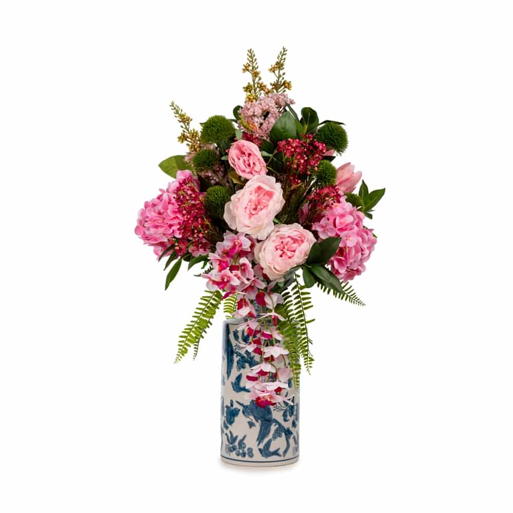 Bleu Blanc Vazoda Islak Dokulu Ortanca Şakayık Aranjman (70 CM)