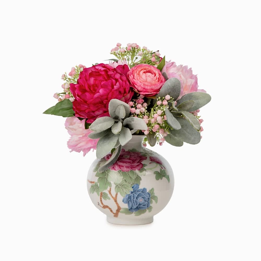 Bleu Blanc Vazoda Islak Dokulu Şakayık Aranjman (32 CM)
