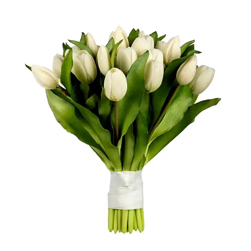 Islak Dokulu Beyaz Cipsolu Lale Gelin Buketi (39 CM)