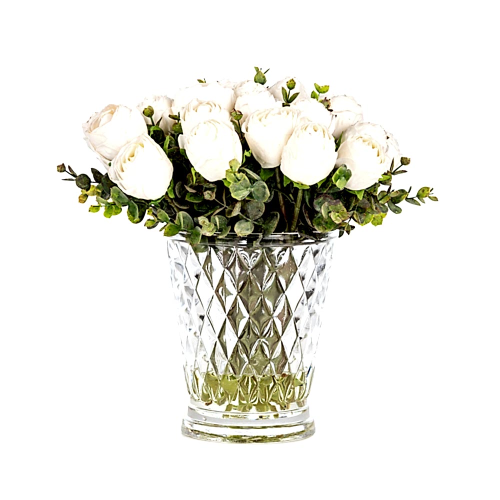 Jelli Cam Vazoda Islak Dokulu Krem Gül Aranjman (17 CM)