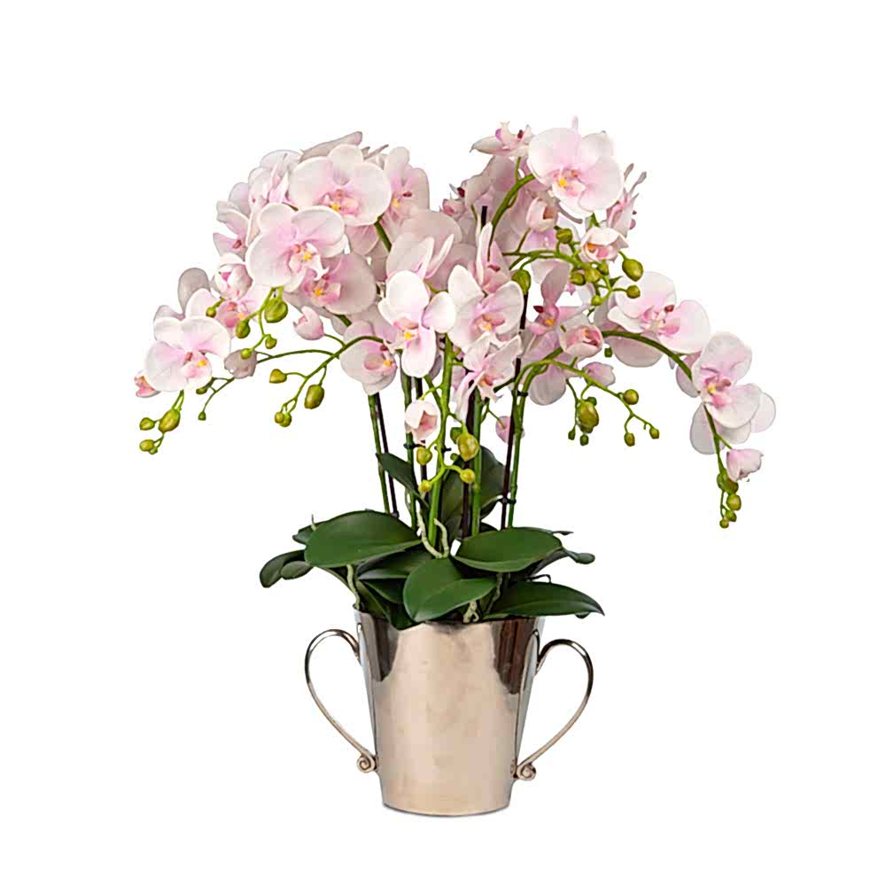 Metal Saksıda Islak Dokulu Pembe Orkide Aranjman (50 CM)