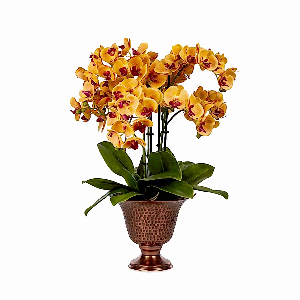 Metal Saksıda Islak Dokulu Sarı Orkide Aranjman (50 CM)