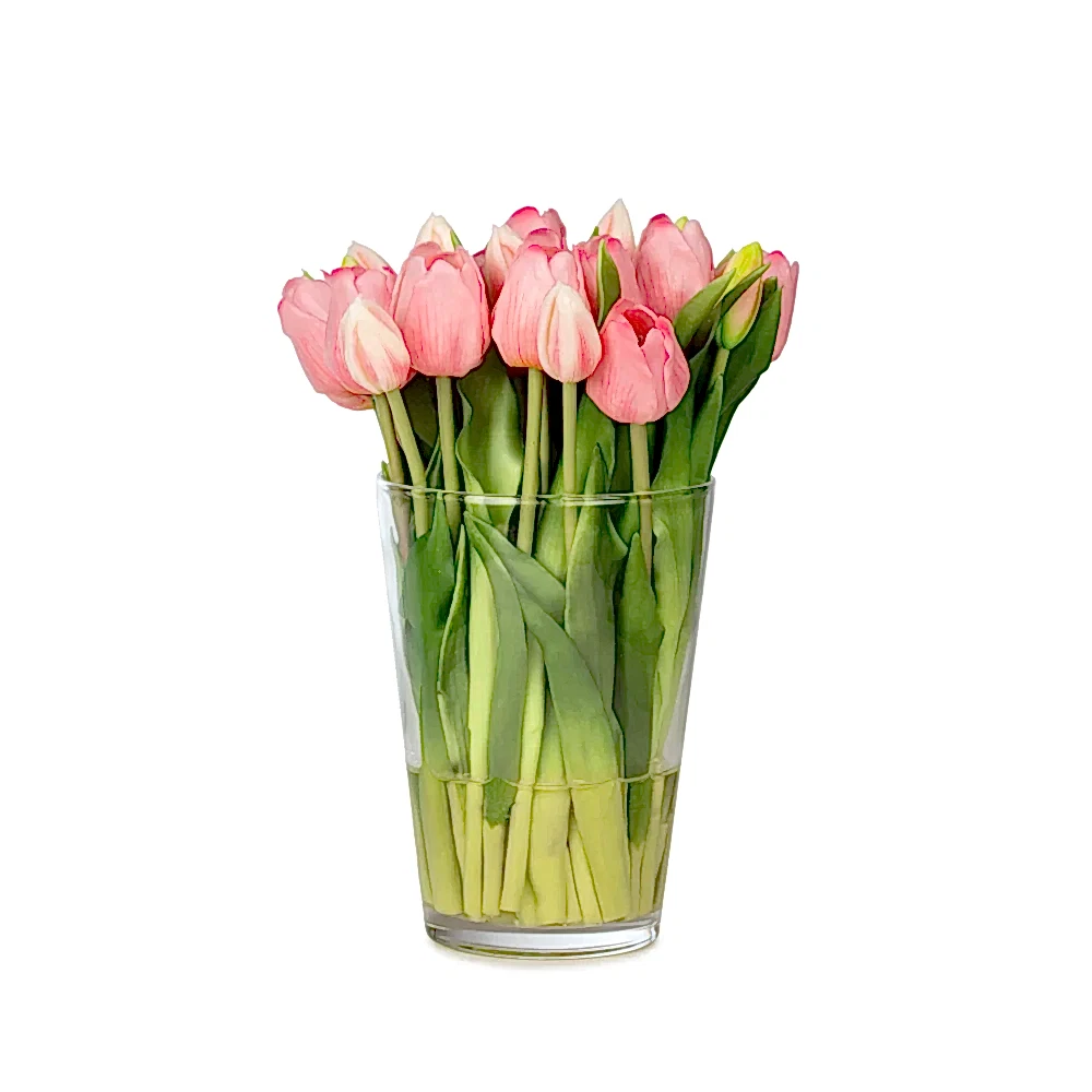 Uzun Cam Vazoda Islak Dokulu Jelli Pembe Lale Aranjman (30 CM)